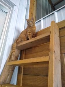 In any case, the tabby tyro spends his overnight hours exploring the flora and fauna of greater Four Sticks Farm. He’s cultivating his kitten brain, becoming a solid-citizen cat as he experiences the ways of the world beyond the boundaries of the barn, and learns a little about how the other halves live.