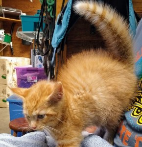 Two months ago, I went to collect my little orange cat for his annual vet visit. He was conveniently located in the barn, so I made a few pleasantries, scooped him up, carried him into the tack room and tried to put him into his little cat crate.