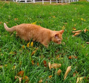 Turns out my once-courageous kitten grew up to be a cowardly cat. Fennel came to Four Sticks, a 10-week-old bit of orange tabby toughness, ready to take on the Goliath in golden retriever clothing. He honed his hunting skills on baling twine, barn flies and grasshoppers, then leveled up to field mice, woodpile chipmunks and the occasional slow-witted songbird.