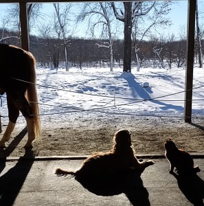 The four-leggeds adapt to what the world presents and live their lives with admirable acceptance – no whining, no resentment, no scheming to change conditions to their own convenience. They seek shelter during the extreme conditions, but still move out, stretch out, and search out the sunny spots for at least a little while, every day.